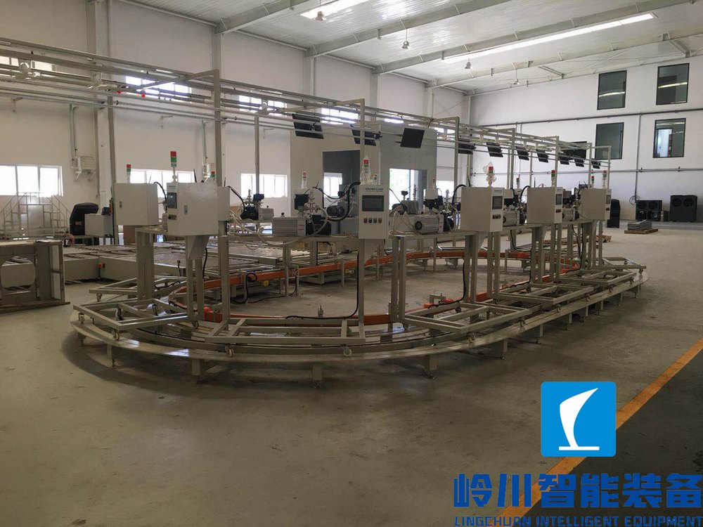 嶺川空氣源熱泵組裝線系統(tǒng)----空氣源熱泵自動(dòng)化生產(chǎn)線輸送系統(tǒng)---抽真空線